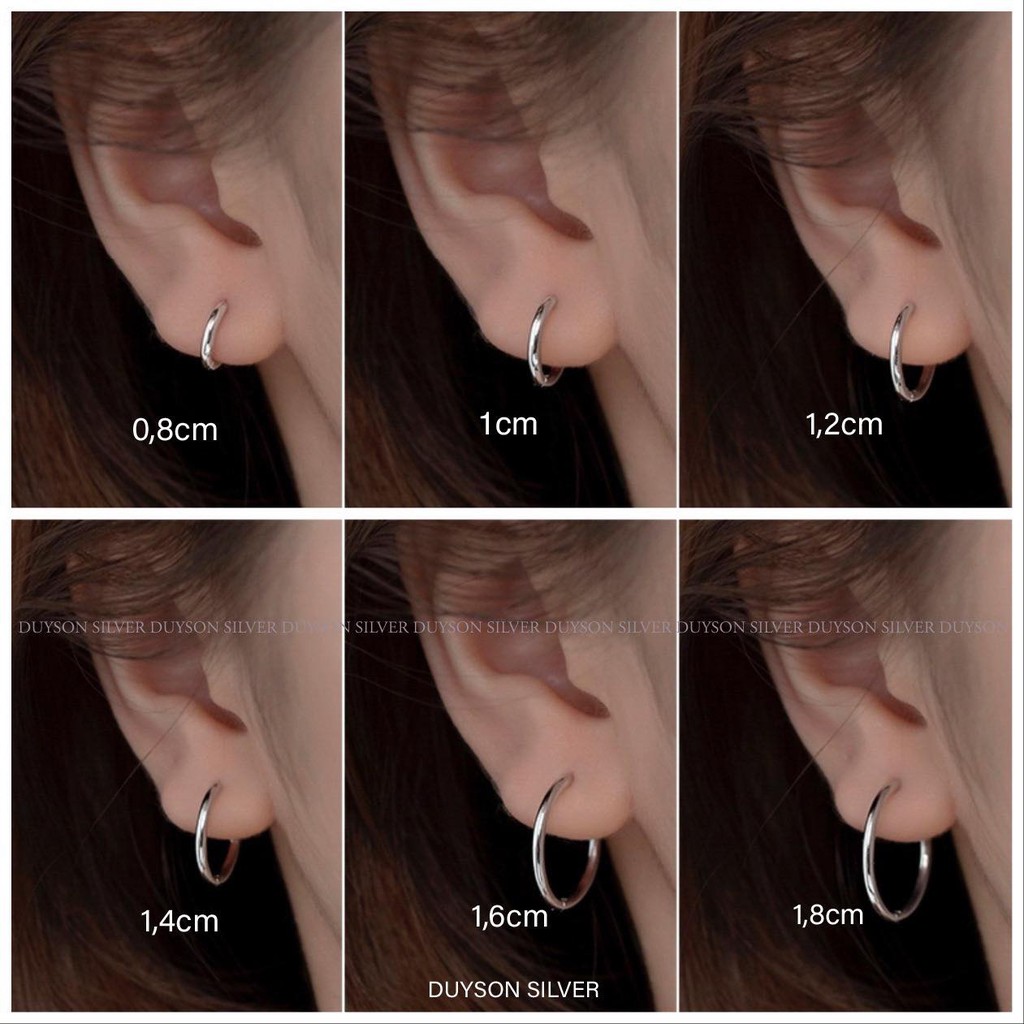 Bông tai tròn bạc nữ Khuyên tai tròn trơn Basic nhiều kích cỡ bạc 925 free ship