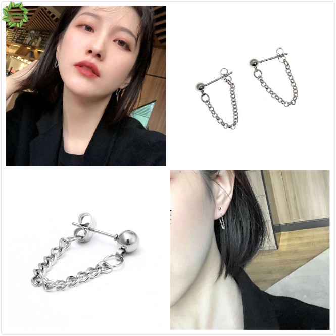 Đôi khuyên tai dạng chuỗi màu bạc thời trang cho nữ free ship