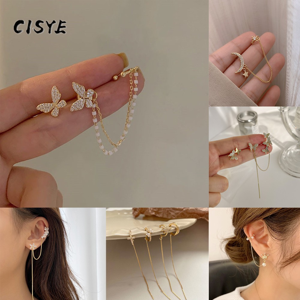 [ Mã 11FASHIONSALE1 giảm 10K đơn 50K ] Bộ khuyên tai dạng kẹp hình bướm phối dây xích tua rua phong cách Hàn Quốc free ship