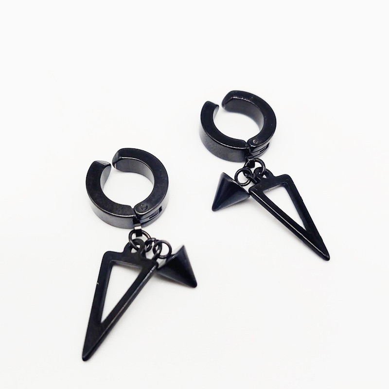 Khuyên Tai Kẹp Titan không bấm lỗ - bông tai nam treo tam giác cá tính free ship