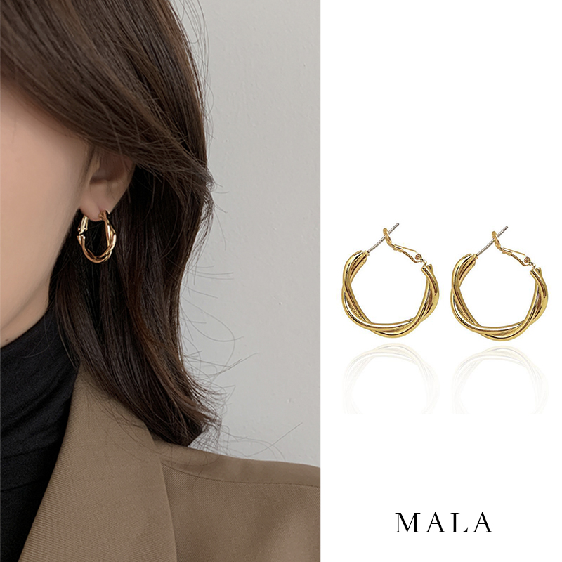 Freeship- Đôi Khuyên Tai Mala Chốt Mạ Bạc 925 Dáng Tròn Màu Vàng / Bạc Phong Cách Hàn Quốc Cho Phụ Nữ mua tại đây