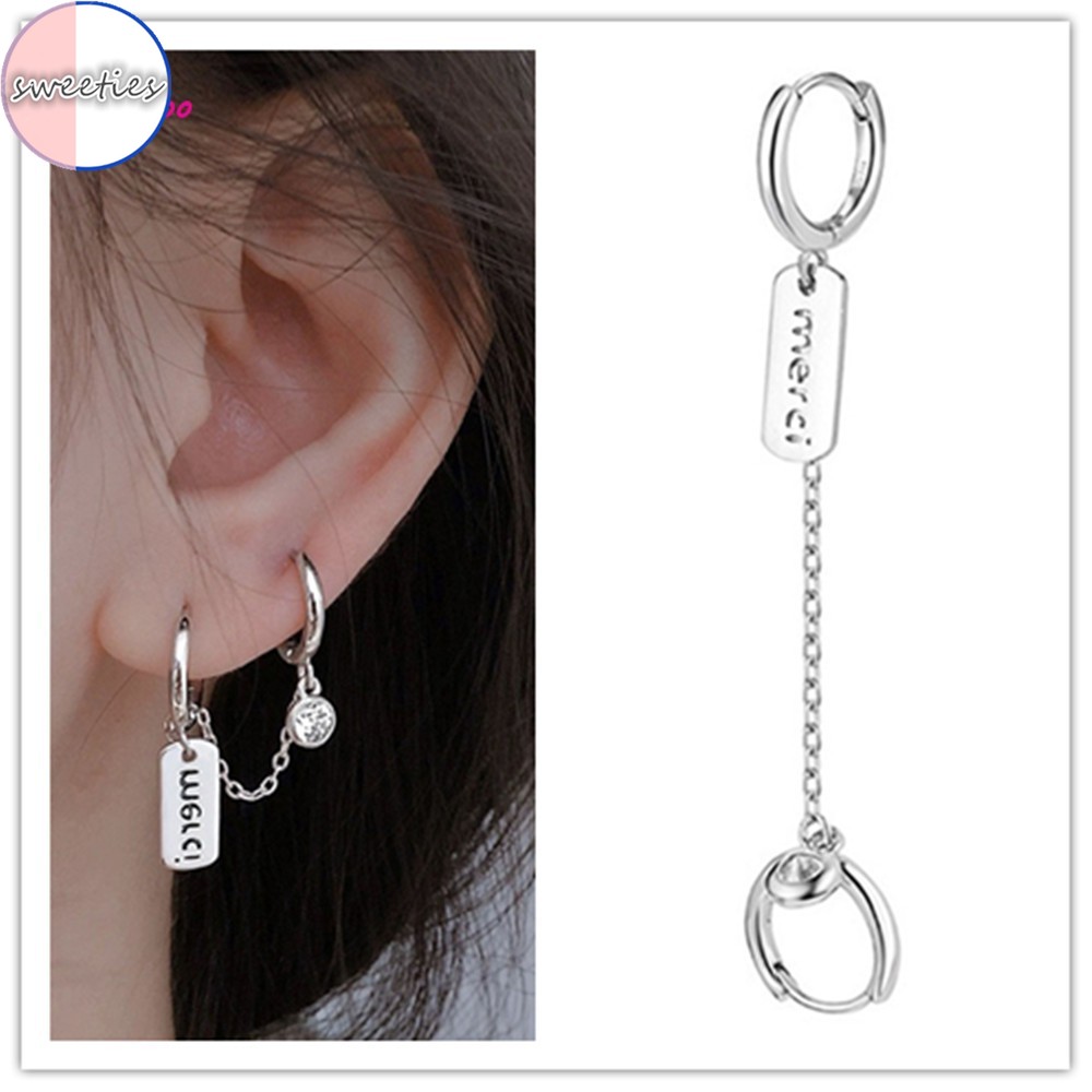 Khuyên Tai Nữ Dáng Dài Hai Đầu Tròn Phối Dây Xích Mặt Khắc Chữ Thời Trang Hàn Quốc Cho Nữ free ship
