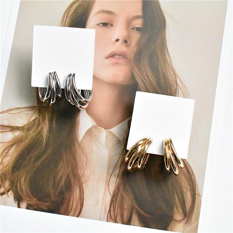 Khuyên tai nhiều lớp chữ C mạ bạc S925 cho nữ free ship