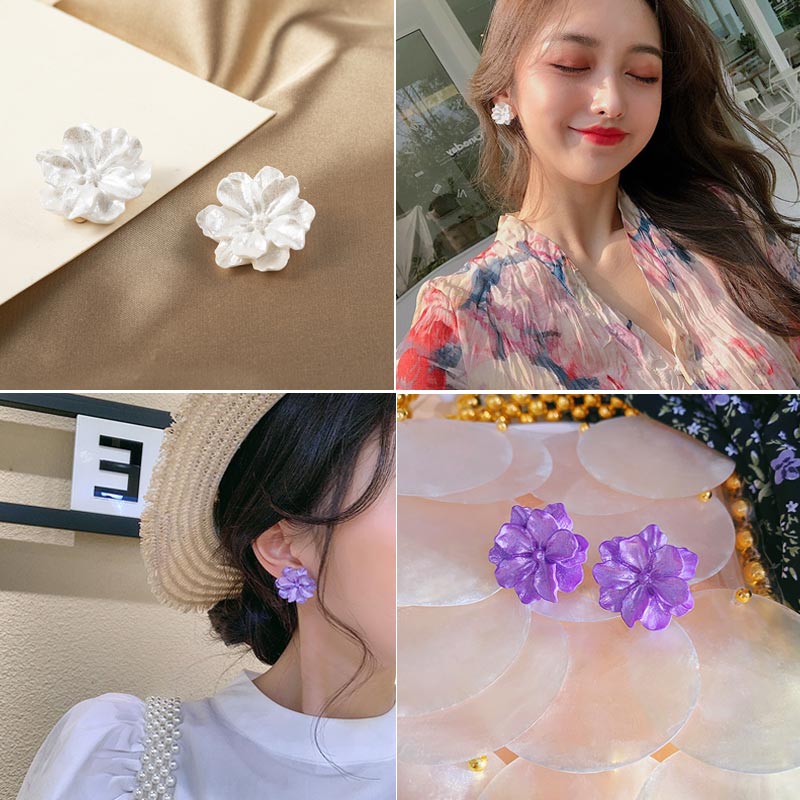 Khuyên tai nữ mạ bạc 925 hình bông hoa phong cách Hàn Quốc free ship