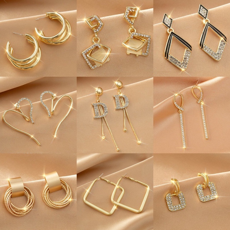 Khuyên Tai Vàng Hình Học Dáng Dài Phong Cách Hàn Quốc Thời Trang free ship