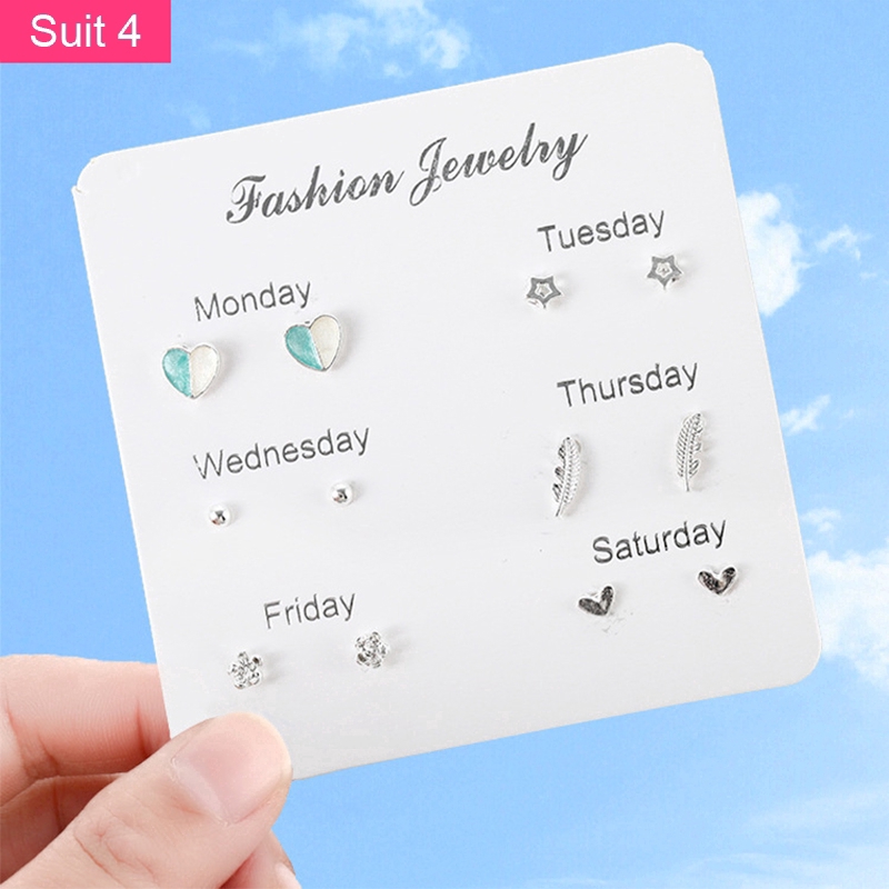 Set 6 đôi khuyên tai phong cách Nhật Bản Hàn Quốc xinh xắn dành cho nữ free ship